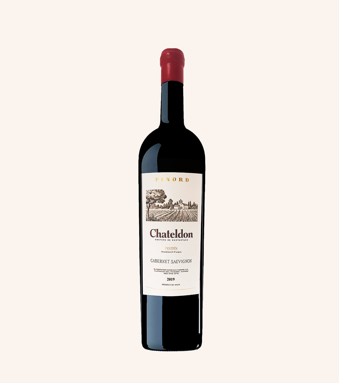 El nombre de Chateldon proviene de la unión de "Chato", en referencia a la masía de la finca, y "Cabernet Sauvignon", la uva con la que se elabora este vino. En la etiqueta, aparece la ermita de Mas Muntayans, situada en la finca, junto con los viñedos de los que proviene este vino, reflejando la conexión entre el terruño, la tradición y la uva que lo define. Es un clásico de la bodega que refleja la larga historia vitivinícola de Pinord.